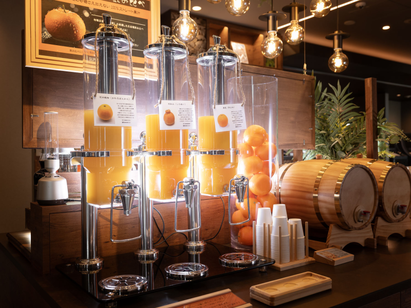 ・ウェルカムラウンジにていくつもの種類のお飲み物を無料で楽しめる「ウェルカムバー」を提供しております。愛媛3種ミカンジュースの飲み比べも(18時から21時。おひとり様1杯ずつ、なくなり次第終了)
