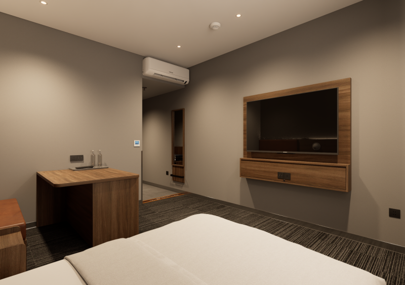 【客室設備】個別エアコン/冷蔵庫/55型TV(日本語チャンネル・各種ストリーミングサービス完備)/その他アメニティ