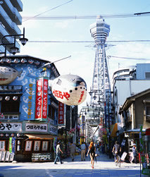 ディープな下町を体験できる観光名所、新世界の入口にそびえる大阪のシンボル。